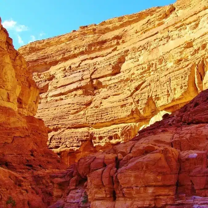 Неповторимые лагуны с коралловыми садами делают его уникальным в этой сфере. Здесь температура моря и воздуха всегда выше. Рядом с Дахабом в песчаных скалах за тысячелетия утворился единый в этом роде каньон.Дахаб и Каньон 4 в 1 из Шарм-эль-Шейха